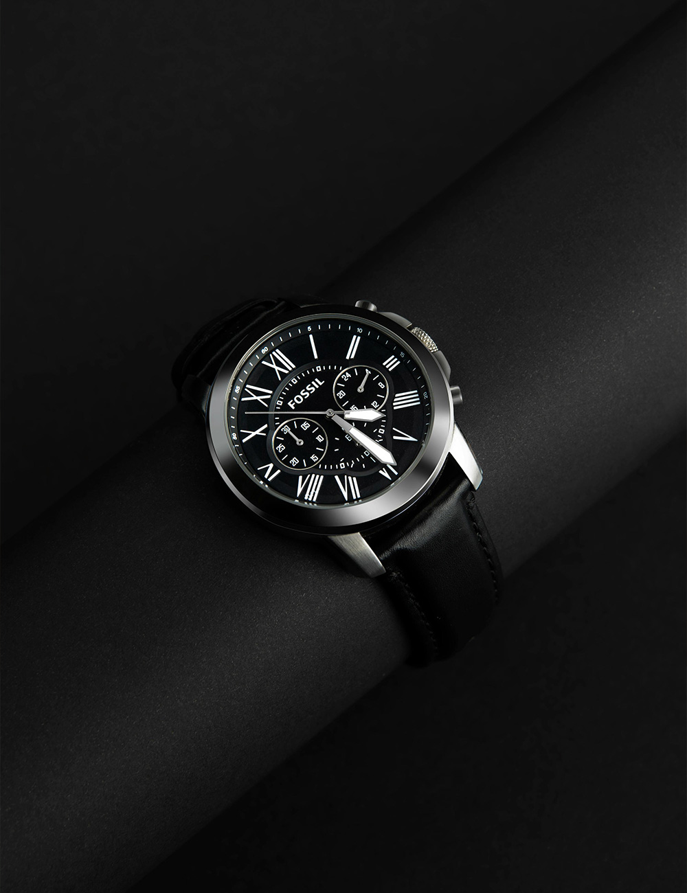 Men's quartz stainless steel leather chronograph watch